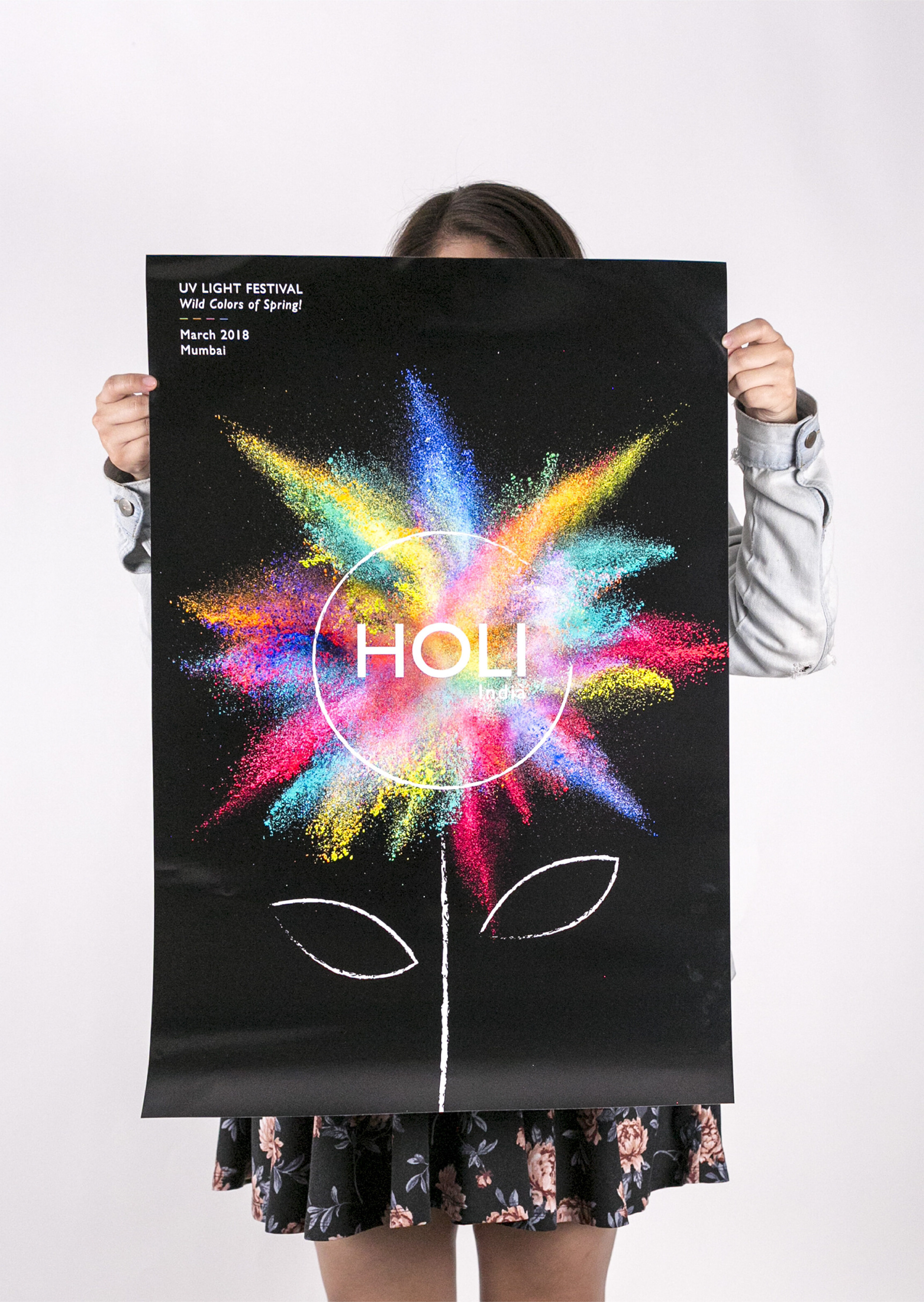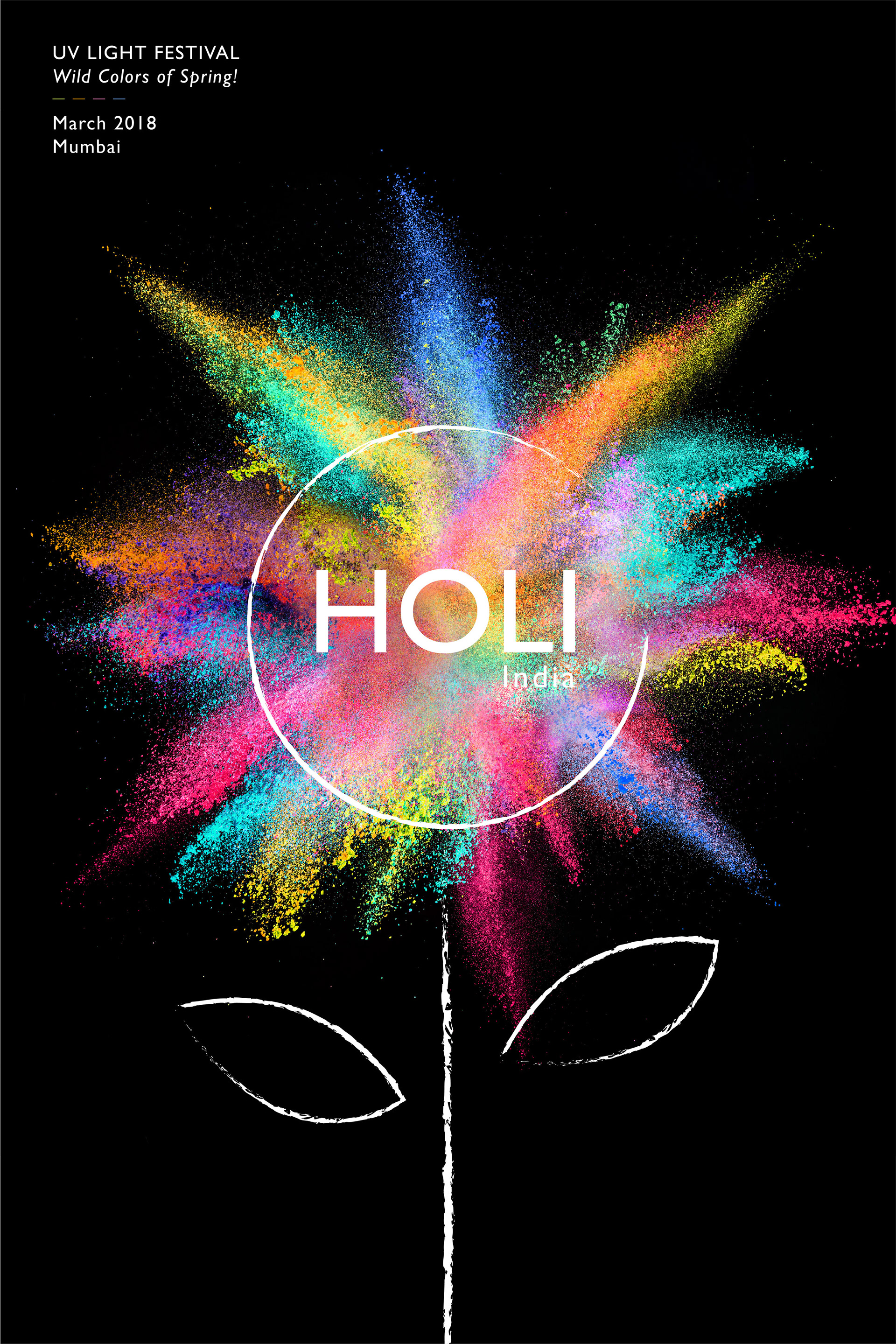 Poster design for Holi, the festival of colors! The design focuses on the welcoming of the spring season with a modern twist.